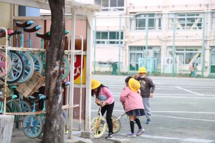 1年生はお花の水やりも忘れません。