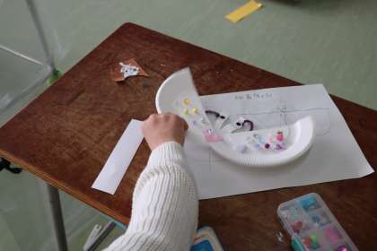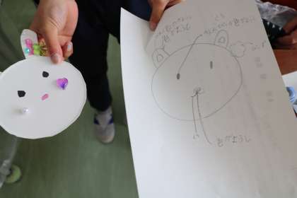 紙皿を使ってそれぞれ自分のアイディアを活かした作品ができました。設計図通りにできたと嬉しそうに見せてくれる子もいます。