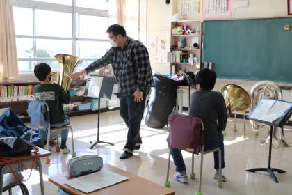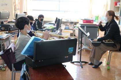 ご指導のおかげで、今日初めて低い音が出せるようになった子もいました。みんな頑張っています。