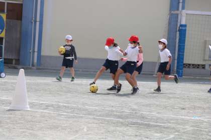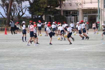 2年生体育「ボールけりゲーム」の様子です。