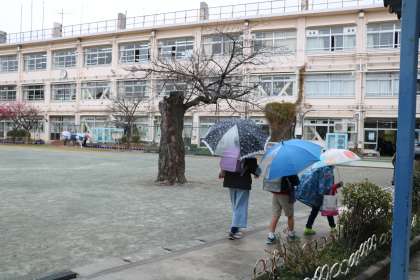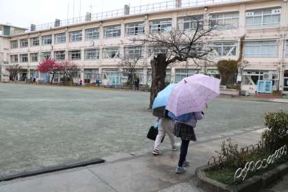 今朝は、登校時間に弱い雨が降ったりやんだりの寒い朝でした。久しぶりに傘をさしながらの登校でした。