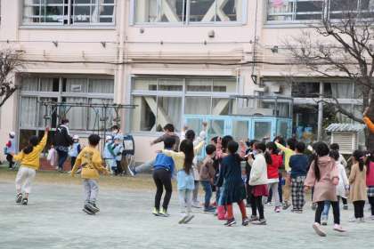 あさ、登校してくる子どもたちを、今朝は正門で迎えていましたが私の顔を見るなり