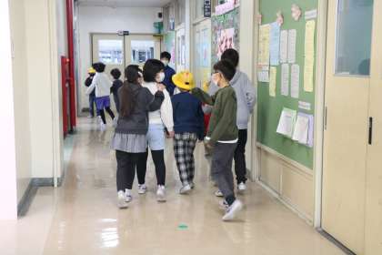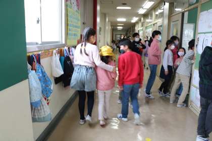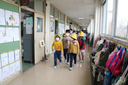 4年生が1年生を迎えに行ってスタートです。