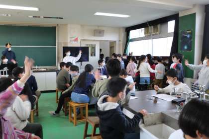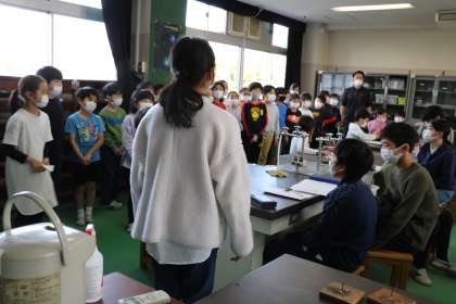写真は化学クラブの様子です。今日は最後の実験、線香花火を作ってみました。