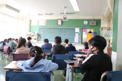 テストをやるときは机の向きを変えていつも以上に距離をとってやっています。