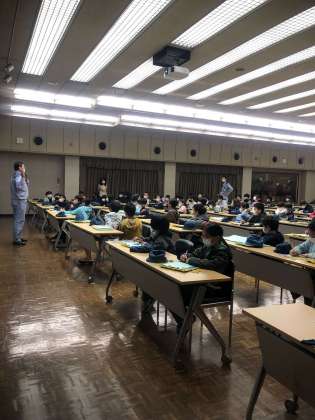 見学終了。アメニティホールに戻ってきました。ここで質問に答えていただきました。たくさん質問したい手が挙がります。
