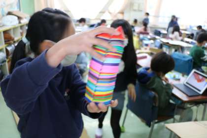 2年生の様子です。転出するお友達のおわかれ会の準備をしているそうです。