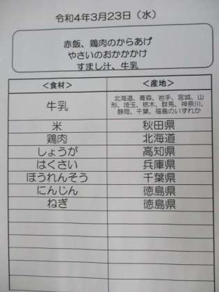 本年度も給食活動にご理解ご協力いただき、ありがとうございました。来年度もどうぞよろしくお願いいたします。