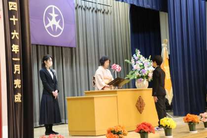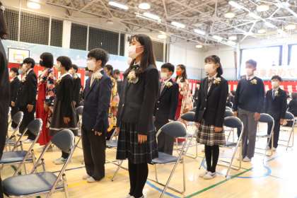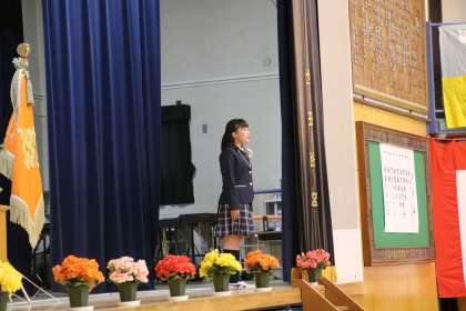 返事、動作、決意表明、どれをとっても立派で、砧小学校の卒業生にふさわしい態度です。一人一人の子どもたちに、卒業証書を手渡すことができて幸せでした。