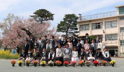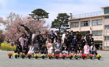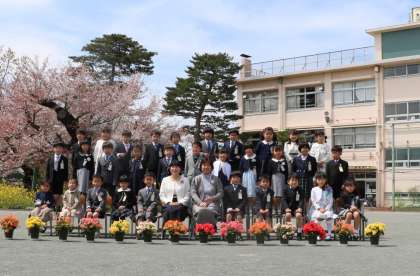 最後に校庭で、学級写真を撮りました。
