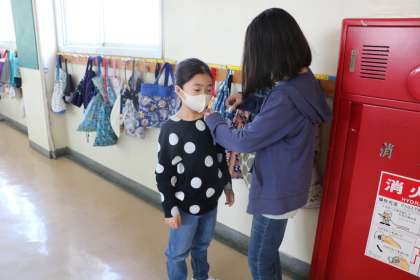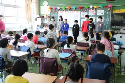 朝のしたくが終わったところで、6年生は教室に戻ります。