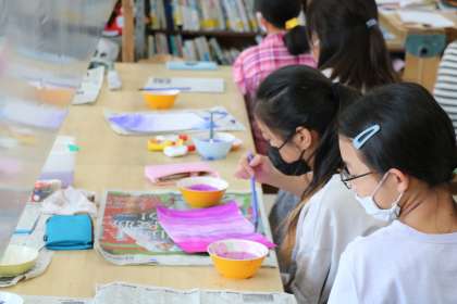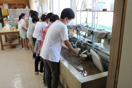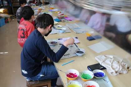 5年生の図工の授業です。今日は絵具でグラデーションを作っていました。色の濃さを変えることで表現の幅が広がることを学習していました。今年度は展覧会もあります。学んだことを作品つくりに生かしていきたいですね。後片付けも協力して取り組めていました。