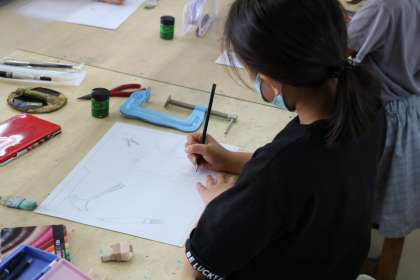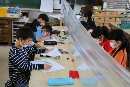 3年生の図工の授業です。今日は、「図工の道具図鑑」の制作でした。鉛筆を使ってやさしい線で描くことを意識して制作していました。どの子も道具をよく見て丁寧に描いていました。