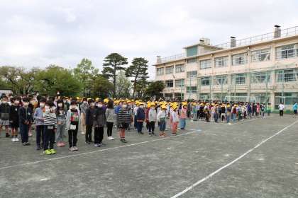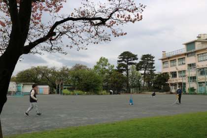 今日の朝は「1年生を迎える会」です。早朝7時から先生たちは校庭のコンディションを確認したり、ラインを引いたり準備をしました。