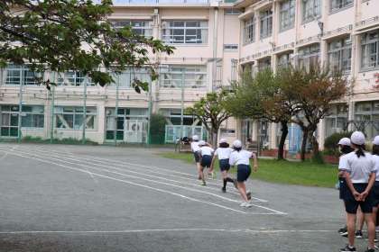 6年生が学年で70メートル走のタイムを取っています。警備さんが警備室から見に出てくるくらい、走っている子を応援する声のすごいこと!温かく、仲が良く、われらがリーダー6年生の素晴らしいところです。