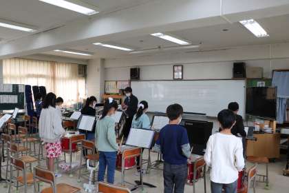6年生の鼓笛練習にプロの演奏家をお招きしました。子供たちは、プロの演奏家の丁寧でわかりやすい説明に熱心に耳を傾けていました。とても貴重な時間を過ごすことができたようです。
