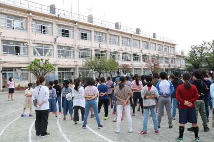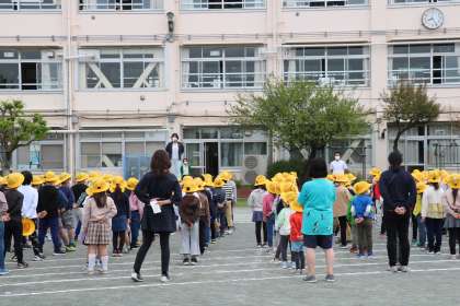 全校朝会では、1年生もしっかり話を聞けました。日頃からあいさつの上手な砧の子どもたち。今週の目標は「しかりと あいさつしよう 自分から」です。