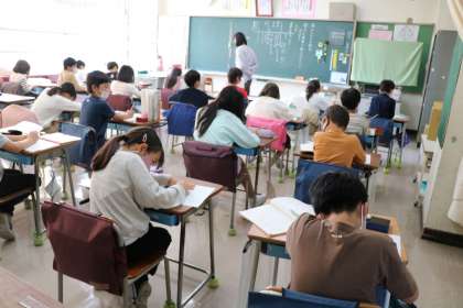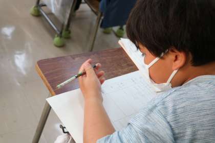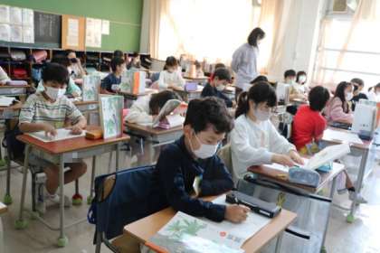 3年生国語「きつつきの商売」の学習の様子です。ワークシートに場面ごとに読み取ったことを一生懸命書き取っています。この後、友達と紹介しあうそうです。どんな同じところ、違いがあるか楽しみですね。