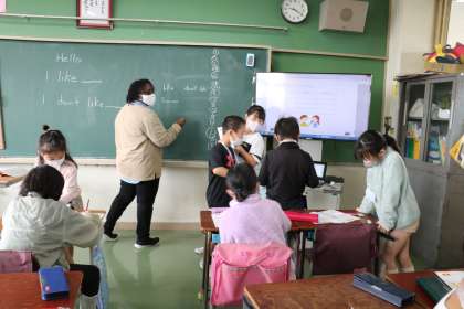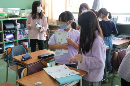 今日は、友だちに自分の好きな物、苦手なものを紹介してから、友だちのも聞き、表を埋めていきます。たくさんの友達とかかわり英語のフレーズを繰り返すうちに、自信に満ちた表情になってきます。