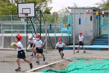 今日の中休みは1・2年生の遊べる日です。体育が終わった後の1年生は大喜びで遊び始めました。
