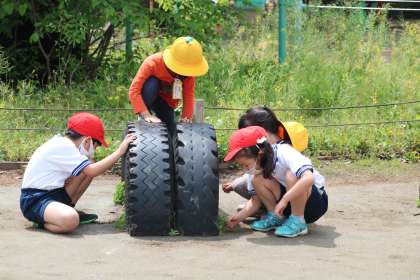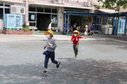 体育着から着替えてきて、黄色い帽子をかぶって遊びに出てきた子もいます。なんと素早い!