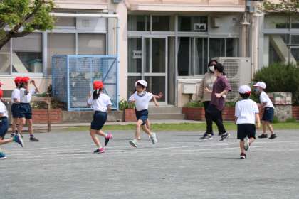 砧小学校の先生たちは、子供たちと一緒にたくさん遊んでくれます。