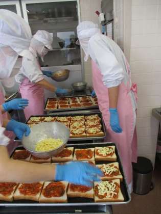 給食室でピザソースを作り、食パンに塗ってチーズをのせてオーブンで焼きました。給食室で作ったピザトーストはとても好評でした。美生柑は1年生ははじめて食べる人が多かったようで、黄色い皮の見た目に「すっぱそう・・・」と心配していました。美生柑はさわやかな甘さで果汁たっぷりのとってもおいしい旬の果物です。