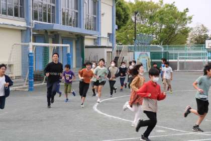 今日は5年生が朝のランランランの日です。気温も低くて、ランニングにちょうどいい天候でした。短い時間ですが、気持ちよく体を動かせました。