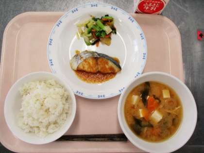 今日の魚は鰆です。上にたまねぎのすりおろしを入れて作ったソースをかけています。