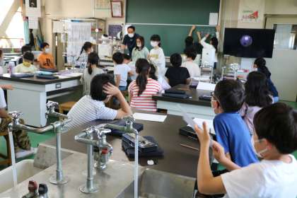 写真は科学クラブ、パソコンクラブ、校庭スポーツクラブの様子です。