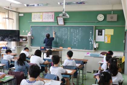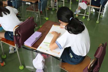 4年生の道徳の授業です。「あいさつができた」という教材を読んで、挨拶のよさについて考えていました。主人公が挨拶を返せなかった理由についてたくさんの意見が出ていました。授業の最後の振り返りの時間には、今日の授業で思ったこと考えたことをプリントにしっかり書き込んでいました。
