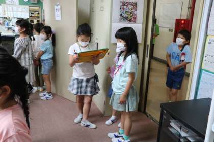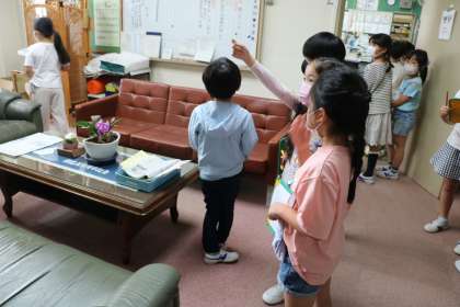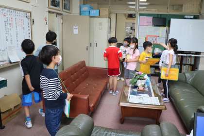 「ここは、校長先生がお仕事するお部屋です。」としっかり説明している2年生です。