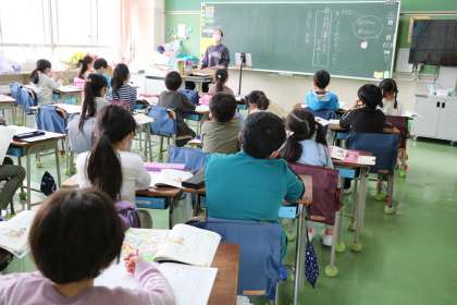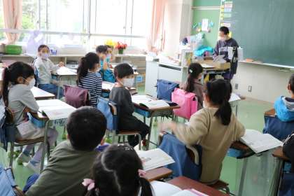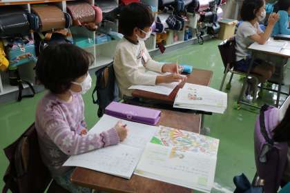 2年生国語「今日のできごと」の学習の様子です。みんなが提出した日記を使い、日記に書くことをまとめる学習です。
