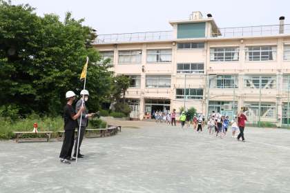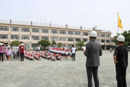 1時間目の後半、今月の避難訓練がありました。今日は職員室からの出火という想定で、東階段が使えません。放送をよく聞き静かに行動しています。1年生も頑張っています。