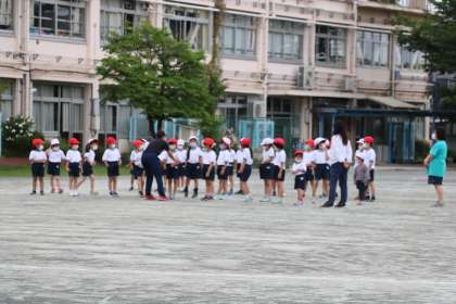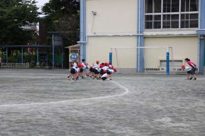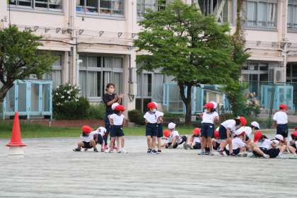 校庭では1年生が体育を頑張っています。