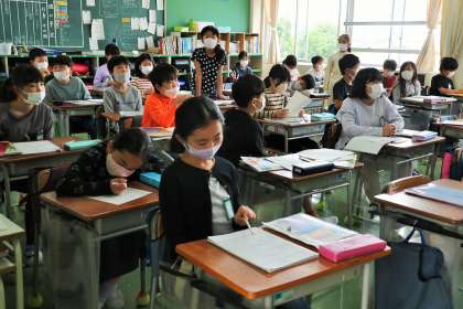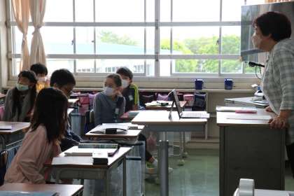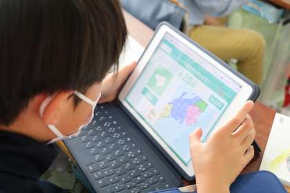 4年生社会の様子です。「家で使う水の量調べ」をするそうです。また隣の学級は、白地図についているサイトから、地図記号や県の形の特徴などを学んでいます。