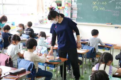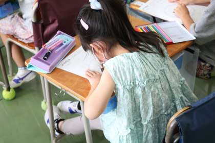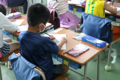 1年生の生活科の授業です。これから植えるアサガオの種の観察を行っていました。アサガオの種をよく見て、丁寧にかいていました。観察が終わったらいよいよ鉢に植える予定です。大きく育つのが楽しみですね。