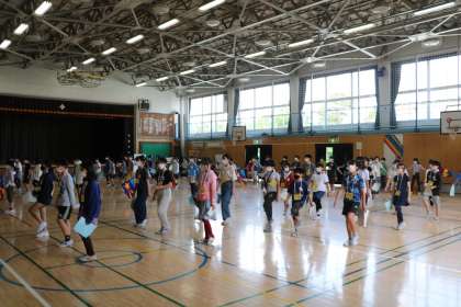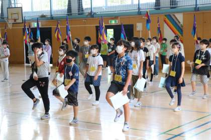 6年生が体育館で鼓笛の練習をしていました。今日は楽器を持たずに隊形移動を中心に学習していました。運動会での発表に向けて練習にも力が入ってきました。すてきな鼓笛隊の演技を期待しています。