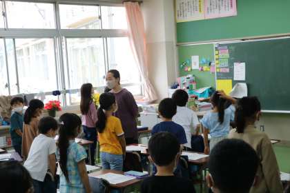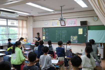 最後に立って、1番だけ歌いました。今年度は開校120周年です。われらが母校砧小学校のことが、ますます好きになってくれると嬉しいです。