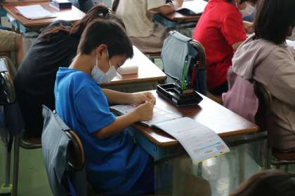 4年生の国語の授業です。漢字の学習を進めていました。先生から漢字の特徴や覚え方を聞いてから、ドリルに丁寧に書くことができていました。4年生は小学校生活でいちばん多い202字を学ぶ学年です。一つ一つしっかり覚えていきたいですね。