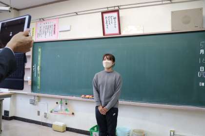 月曜日朝の全校朝会は、今日はZOOMで教室から実施しました。