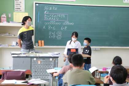 2年生の様子です。次の体育の時間に備えて体育着に着替えているクラスもありますが、頭はしっかり算数や国語に切り替えて勉強しています。