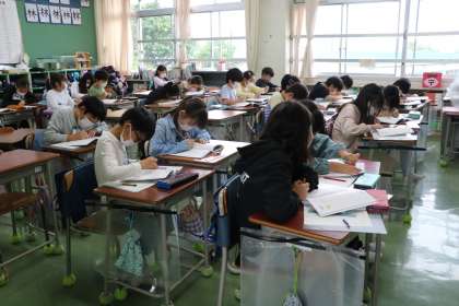 4年生算数の様子です。折れ線グラフの学習をしました。表からグラフにすると、便利だなとか、わかりやすいなとか、色々なことが発見できます。