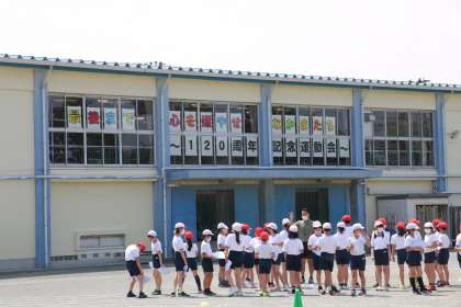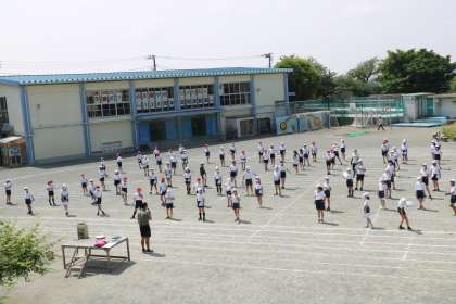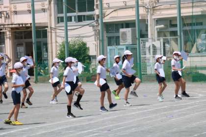 5年生の運動会練習です。校庭で全体の動きも確認しながら練習していました。個々の動きも少しずつ周りと合ってきました。運動会まであと10日です。体育館の窓には運動会のスローガンも貼られて、運動会ムードが高まってきました。