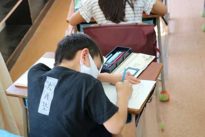 3年生の国語の授業です。説明文の読解の学習をしていました。段落ごとに書かれていることをまとめるのは難しそうです。先生のアドバイスを聞いてしっかりノートをとっていました。