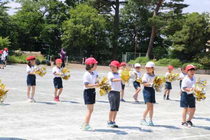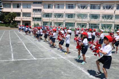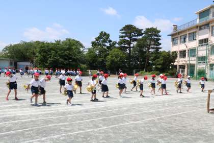 1年生の様子です。踊りながら、前列と後列が入れ替わる練習もありました。リズムをとりながら、相手を意識しながらの隊形移動は難しいですが、1年生頑張っています。