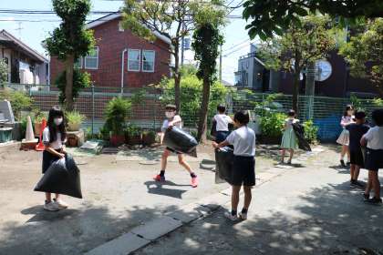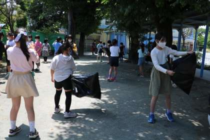 4年生の様子です。理科「空気と水」の学習の様子です。黒いビニール袋に空気をいっぱい集めて・・・さあ何に使うのでしょうか。