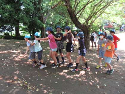 手足をきれいにした後は、5年生と一緒に遊び、一緒に幼稚園まで帰ってきました。年長の子どもたちにとって、5年生は優しくて、親しみのある、憧れの存在です。別れるときにはいつまでも手を振っていました。