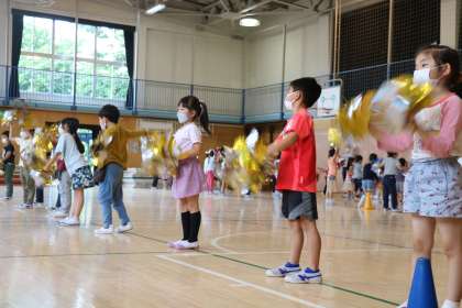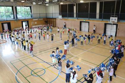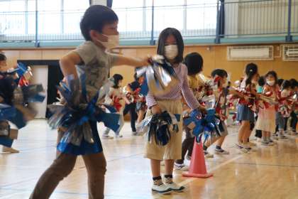 1年生運動会リハーサルの様子です。最後は全員で120の数字を描いています。