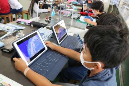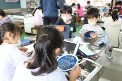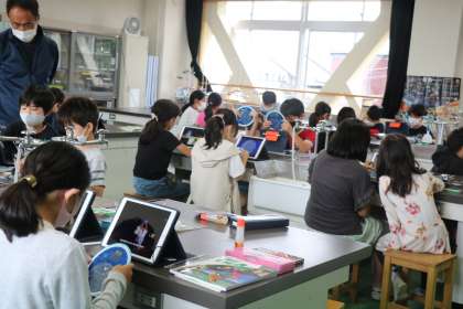 4年生理科の様子です。プラネタリウム見学の準備学習をしている様子です。